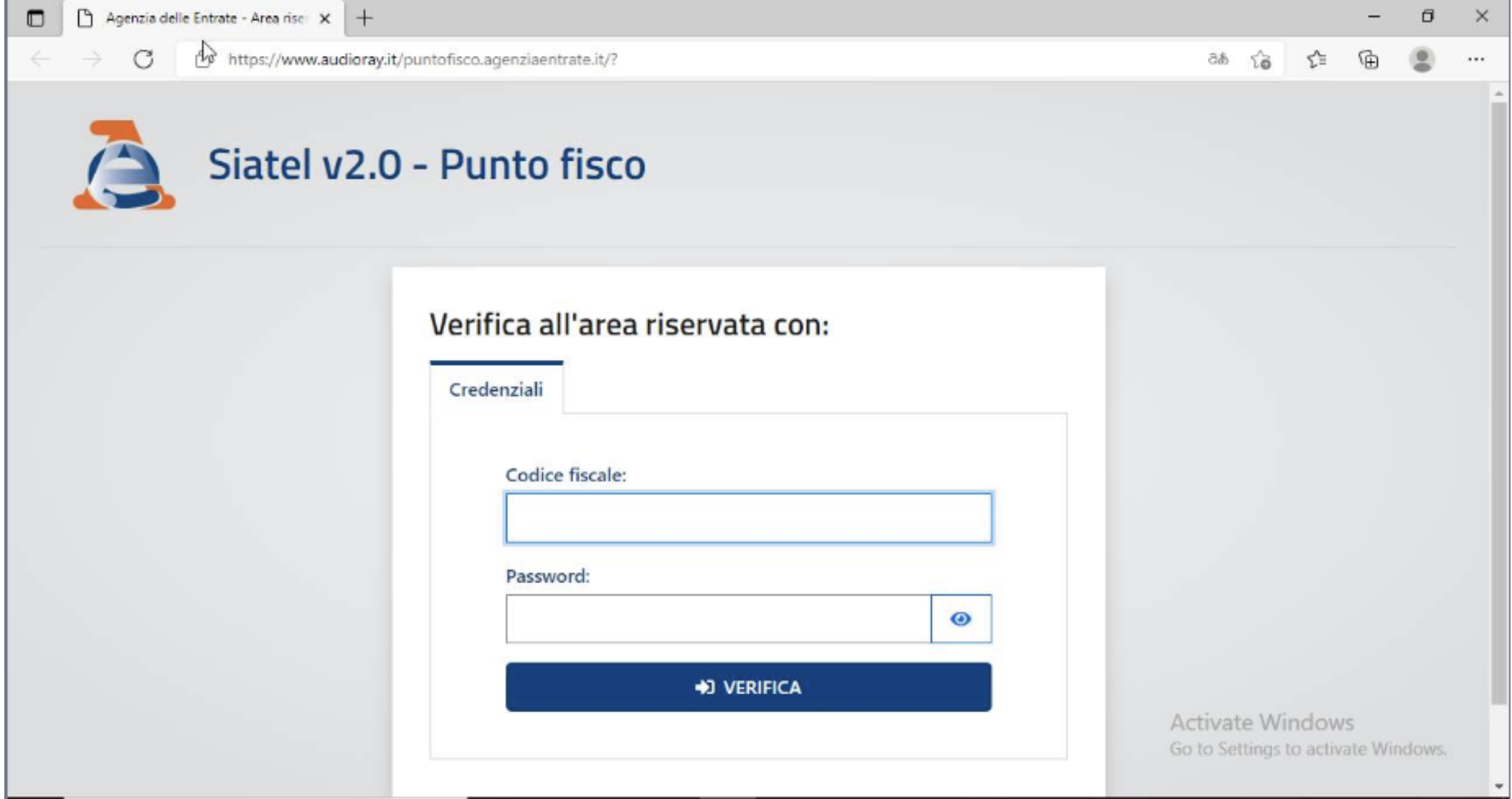 Qui una schermata del portale contraffatto: